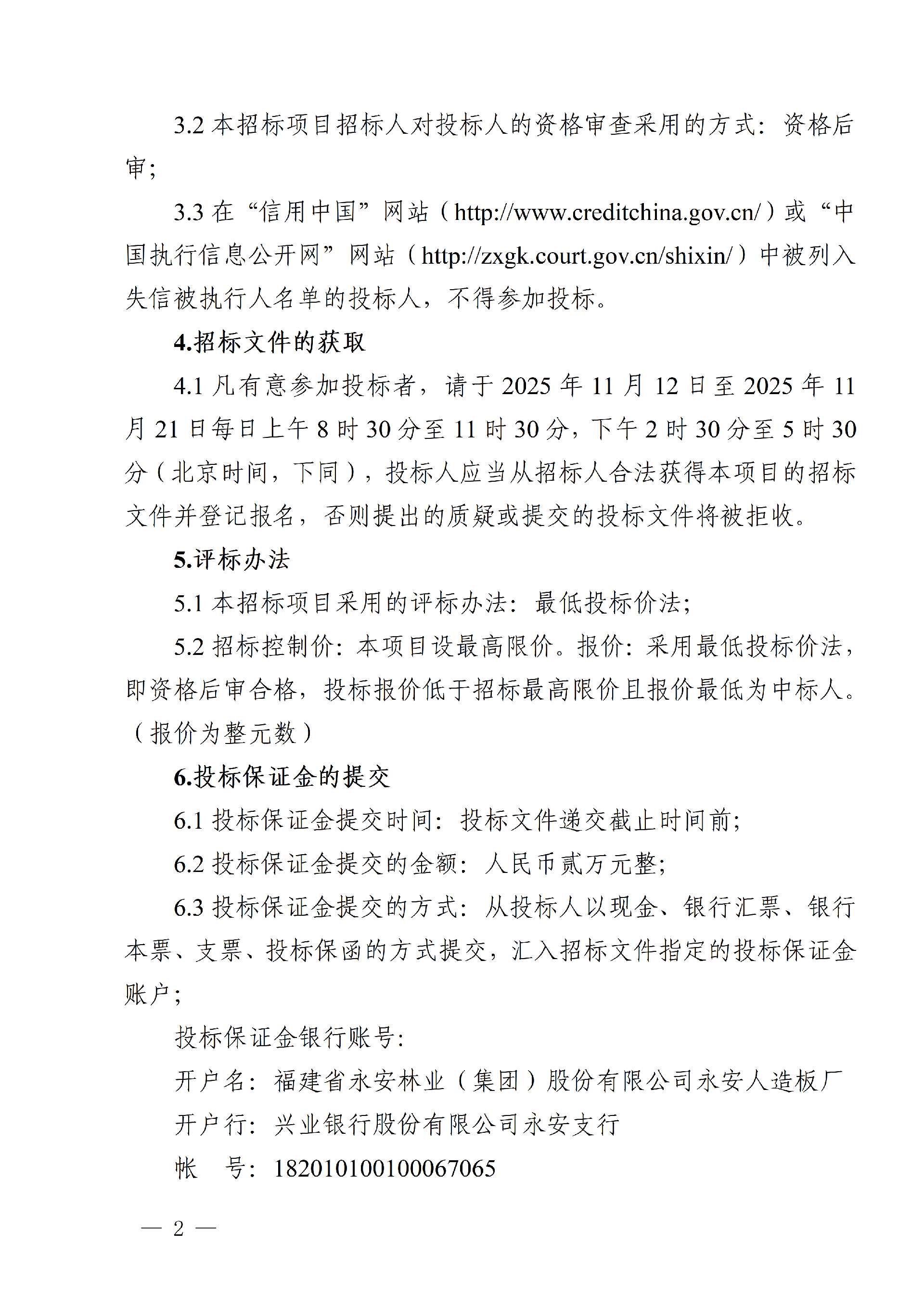 永安人造板廠工業(yè)甲醛溶液采購項(xiàng)目招標(biāo)公告