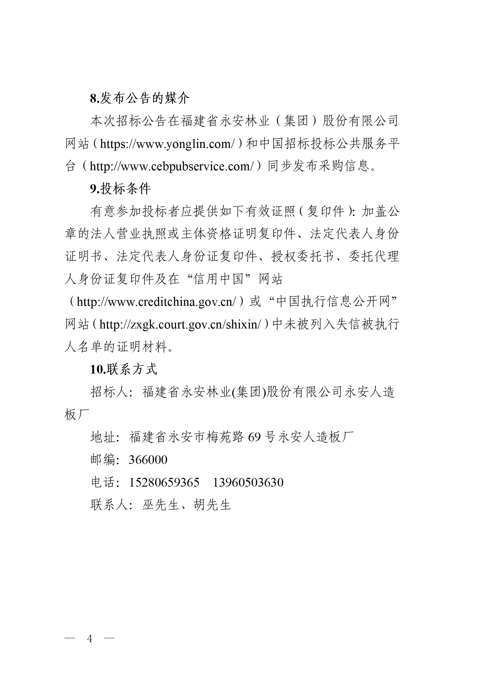 永安人造板廠尿素采購項目招標(biāo)公告