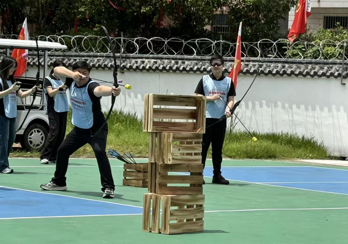 全體青年走進福建(永安)林改陳列館、中央紅軍標語博物館,通過圖文史料、實物展品與現(xiàn)場講解,深入了解永安林改的艱辛歷程與革命先輩的英雄事跡。那些鮮活的紅軍標語跨越時空,既是厚重革命歷史的生動再現(xiàn),更是一次深刻的紅色教育與精神洗禮。隨后的素質(zhì)拓展環(huán)節(jié),三方青年混合編隊,開展了“攻防箭競技”“趣味顛球”等團建游戲?,F(xiàn)場氣氛熱烈,賽場上隊員們默契配合、奮勇爭先,充分展現(xiàn)了新時代青年朝氣蓬勃、昂揚向上、勇于拼搏的精神風貌。