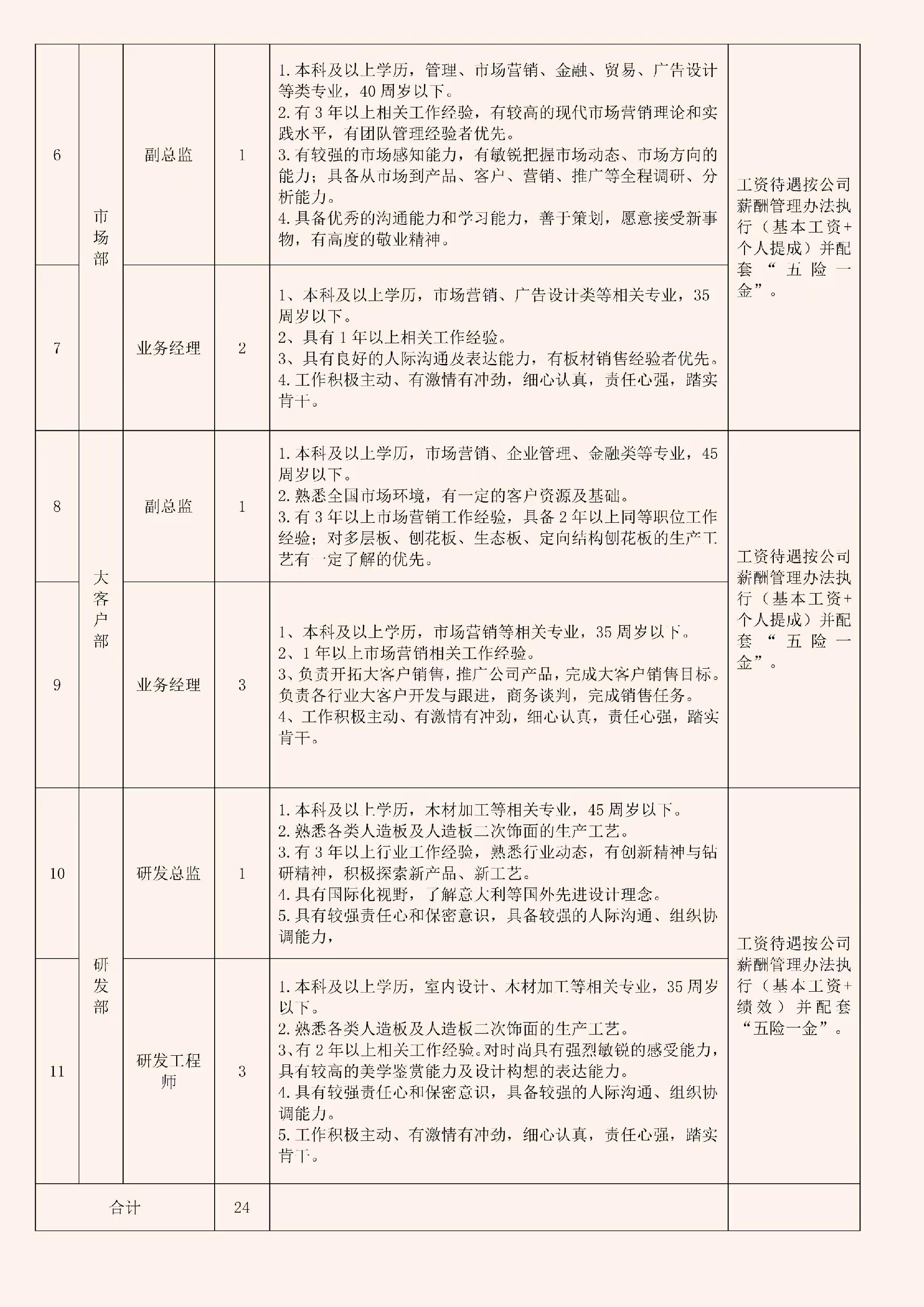 5.研發(fā)部:總監(jiān)1人、研發(fā)工程師3人 具體招聘崗位要求詳見《福建永林家居有限公司相關(guān)崗位招聘計(jì)劃》(附件)