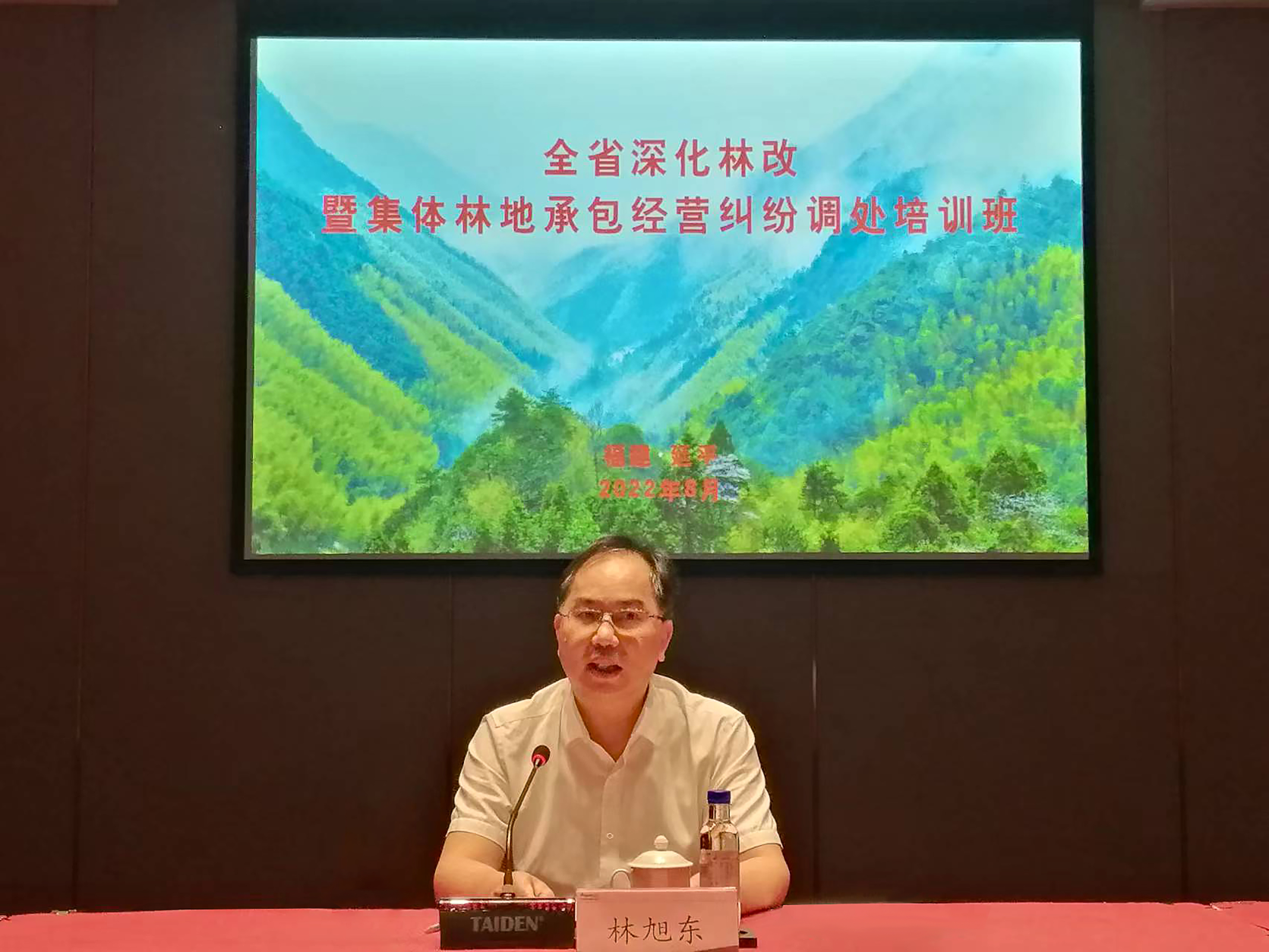 為貫徹落實全省林業(yè)改革發(fā)展會議精神,全面抓好省委省政府《關(guān)于持續(xù)推進(jìn)林業(yè)改革發(fā)展的意見》落地見效,8月9-11日,全省深化林改暨集體林地承包經(jīng)營糾紛調(diào)處培訓(xùn)班在延平區(qū)舉辦,九市一區(qū)林業(yè)主管部門分管領(lǐng)導(dǎo)、林改工作(承包經(jīng)營糾紛調(diào)處工作)負(fù)責(zé)人、20個重點縣林業(yè)主管部門和局有關(guān)處室局站負(fù)責(zé)人等50人參加培訓(xùn)。