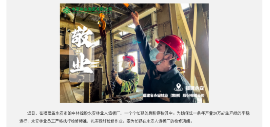 4月21日,國務(wù)院國資委官方網(wǎng)站宣傳欄目發(fā)布《中林集團(tuán)繪就“春日奮進(jìn)圖”》文章,永安林業(yè)報(bào)送的“愛崗敬業(yè)”圖作為中林集團(tuán)的代表之一,成功入選。