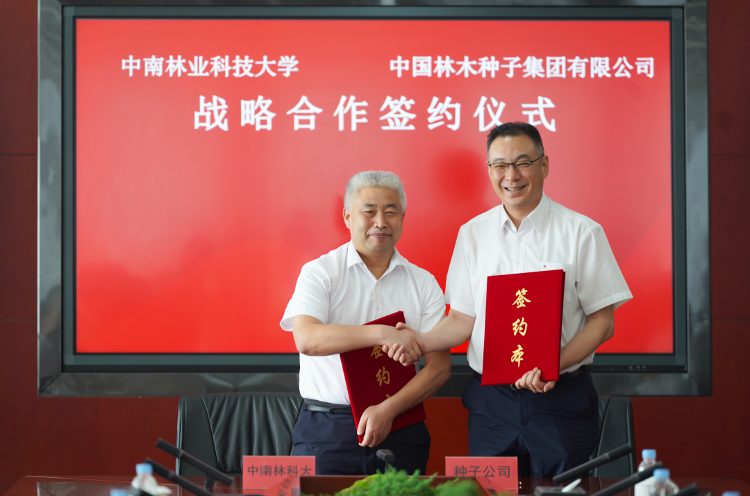 7月24日,中國(guó)林業(yè)集團(tuán)黨委書記、董事長(zhǎng)余紅輝在集團(tuán)總部會(huì)見中南林業(yè)科技大學(xué)校長(zhǎng)、中國(guó)工程院院士吳義強(qiáng)一行,并見證中國(guó)林業(yè)集團(tuán)及集團(tuán)所屬中國(guó)林木種子集團(tuán)有限公司與中南林業(yè)科技大學(xué)簽署戰(zhàn)略合作協(xié)議。中國(guó)林業(yè)集團(tuán)黨委委員、副總經(jīng)理梁中基,中南林業(yè)科技大學(xué)黨委委員、副校長(zhǎng)閆文德參加會(huì)見。