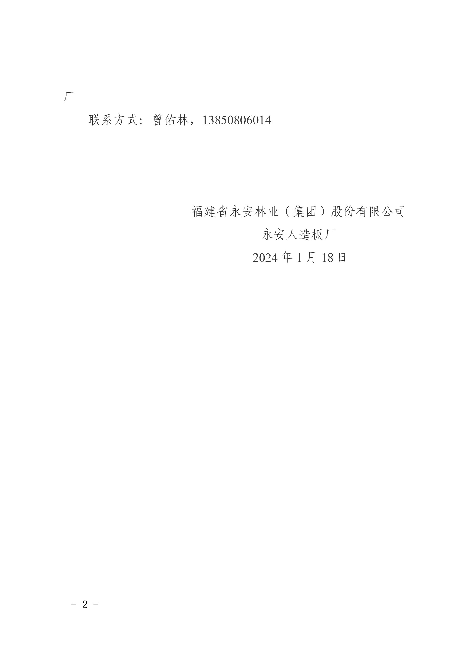 永安人造板廠工業(yè)甲醛溶液采購項目招標公告