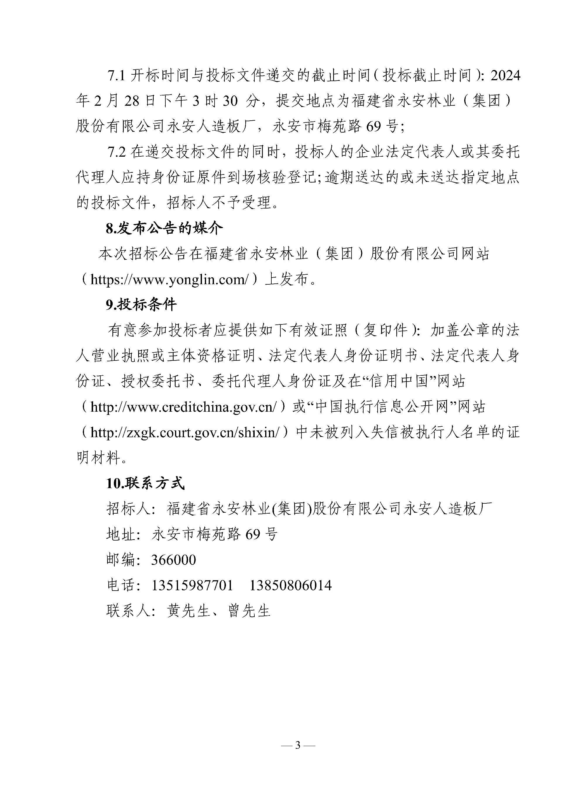 永安人造板廠尿素采購(gòu)項(xiàng)目招標(biāo)公告